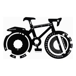 This bike-shaped 20-in-1 multi-tool card fuses form and function into a stylish, portable utility that you'll want to carry everywhere. Cast from durable stainless steel and weighing just ~30 g, it fits in your pocket, wallet slot, or attaches to your keychain. You can use it for repair & maintenance or everyday tasks: it includes hex wrenches (M2.5, M3, M5, M3.5, M4, M7), spoke wrench, protractor, ruler (cm), Phillips screwdriver (Ph1), wire cutter, line cutter, keyhole slot, butterfly wrench, bottle opener and more. Weight: 30g.